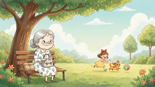 Em um banco, sentada, olhando para um lado, olhando para o outro, ela sorria.